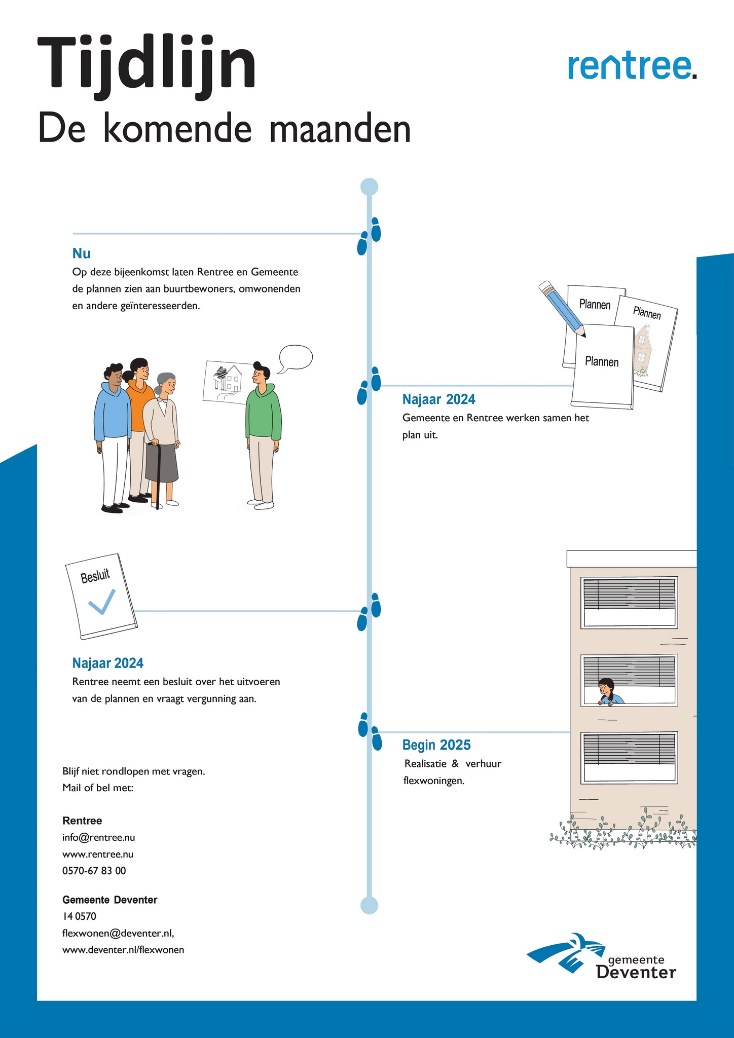 In 2024, 2025 en 2026 willen we de flexwoningen bouwen. In totaal gaat het nu om 154 woningen op 4 verschillende plekken, verspreid door de stad en in het dorp Diepenveen. De woningen zullen van goede kwaliteit zijn, veilig en duurzaam. De gemeente heeft samen met de woningcorporaties gekeken waar flexwoningen kunnen komen.